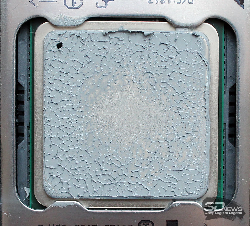 Кроме того, основание Raijintek Nemesis исключительно ровное, а неравномерность полученных отпечатков вызвана выпуклостью центральной части теплораспределителя нашего тестового процессора конструктива LGA2011.