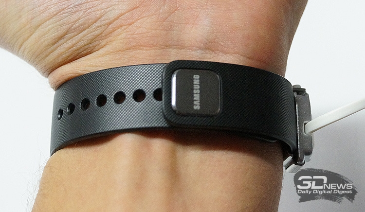 Samsung Gear Fit выпускается с тремя вариантами каучуковых ремешков — чёрного, оранжевого или серого цветов. Ремешки, естественно, сменные, так что в случае повреждений комплектного ремешка его всегда можно будет заменить другим. Кроме того, Samsung собирается предложить различные оригинальные варианты ремешков, созданные в сотрудничестве с известными дизайнерами, — и это правильно, ведь носимая электроника — это еще и модный аксессуар, а не только полезный гаджет.
