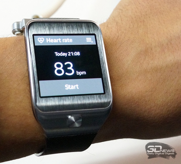 Однако самым главным изменением по сравнению с часами первого поколения стала смена платформы — вместо Android Samsung отдала предпочтение Tizen. Во многом благодаря этому увеличилось время автономной работы часов от аккумулятора — в стандартном режиме оно составляет 2–3 дня, а в экономичном — целых 6 дней. И это притом, что ёмкость аккумулятора уменьшилась с 315 до 300 мА*ч. Прогресс весьма существенный, ведь Samsung Gear приходилось подзаряжать практически каждый день. Еще одним интересным нововведением стало появление в часах датчика сердечного ритма, что особенно оценят любители спорта. Для измерения пульса достаточно запустить соответствующее приложение, и через несколько секунд частота вашего сердцебиения появится на экране. Естественно, часы при этом должны быть надеты, причём достаточно плотно, чтобы обеспечить контакт датчика с телом.
