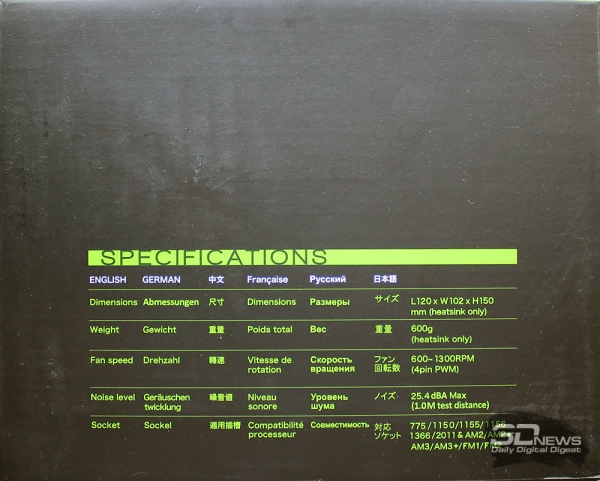 Что касается размеров, то высота кулера уменьшена со 162 до 150 мм, ширина — со 140 до 120 мм, а вот толщина осталась прежней — 102 мм.