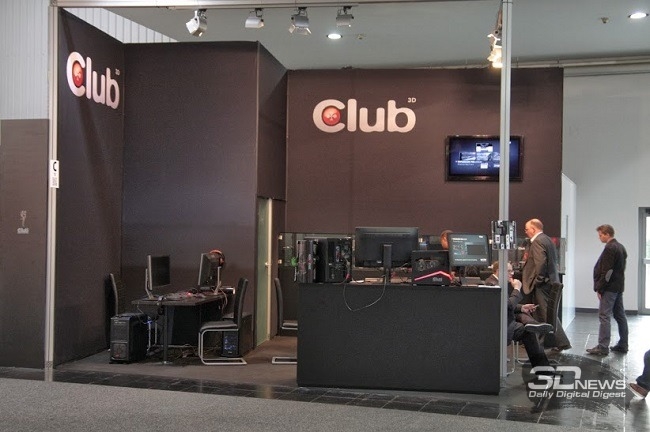 Стенд компании Club3D оказался хоть и не большим, но весьма интересным. Здесь демонстрируются возможности нескольких мощных игровых систем, использующих, разумеется, комплектующие Club3D, в том числе её новейшие графические ускорители.