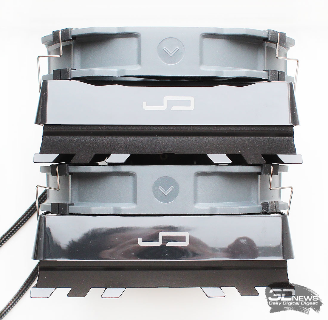 В таком ракурсе съёмки хорошо видна ещё одна особенность CRYORIG — разное межрёберное расстояние между пакетами пластин одной секции. Эту технологию инженеры CRYORIG назвали Jet Fin Acceleration System.