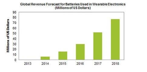 К 2018 году продажи аккумуляторов для носимых устройств вырастут более чем в 10 раз