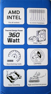 Боковые стороны коробки отведены под описание ключевых особенностей кулера и его технических характеристик, а обратная — под фото кулера и перечень наград, полученных продуктами Thermalright.