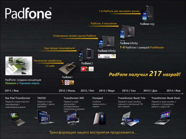 Несколько месяцев назад исполнилось три года линейке устройств, аналогов которых нет ни у одной другой компании. Первый «Падфон» появился на рынке летом 2012 года. Это было передовое устройство с лучшими на тот момент времени техническими характеристиками и богатейшей функциональностью.
