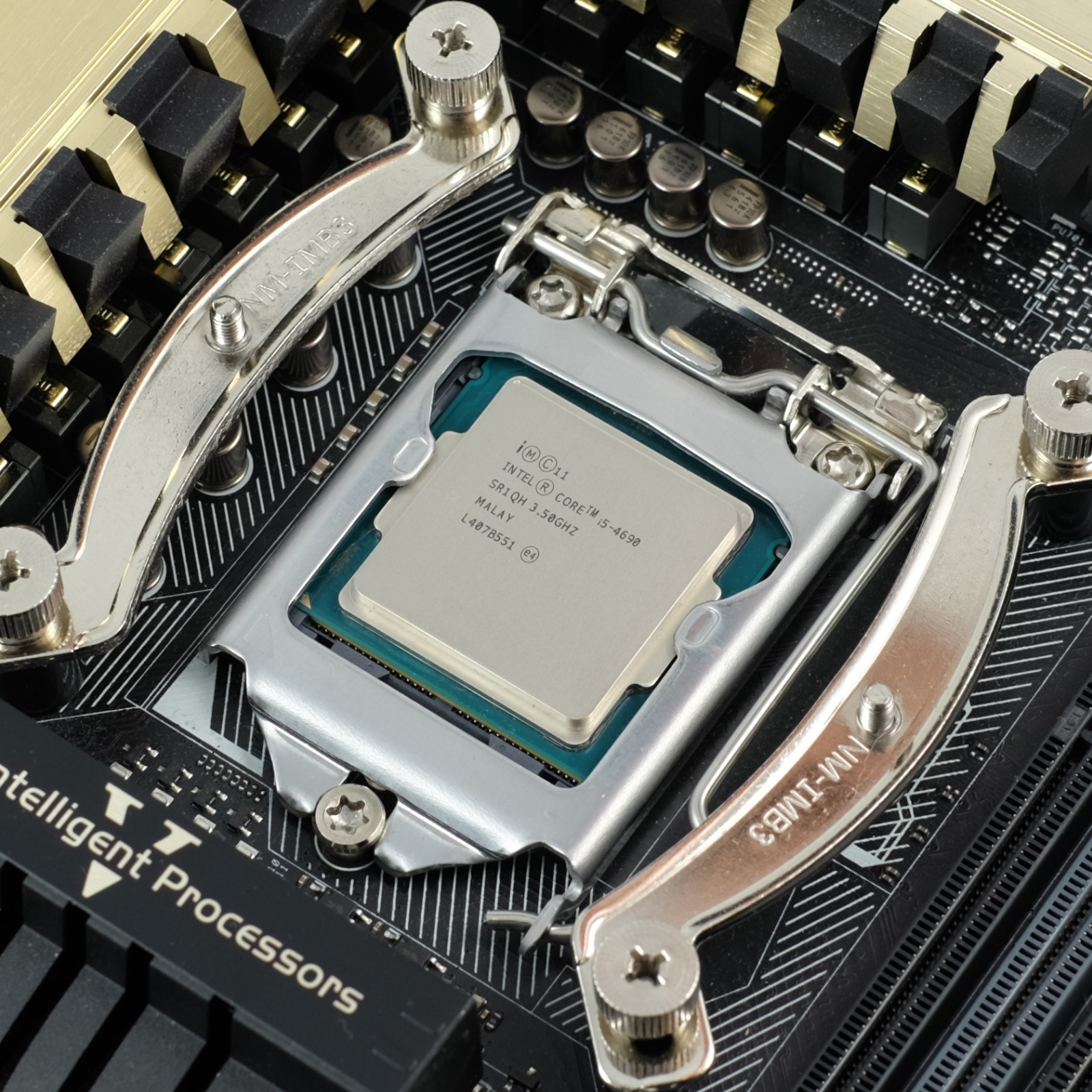 Core i5-4690 — это процессор попроще: в отличие от представителей флагманской серии, в нём нет технологии Hyper-Threading, на 2 Мбайт сокращён L3-кеш и немного ниже тактовая частота. Тем не менее Core i5-4690 смог занять положение старшей модели в серии Core i5: его частота на 100 МГц выше, чем у Core i5-4670, — она составляет от 3,5 до 3,9 ГГц. Благодаря же турборежиму наиболее типичной частотой работы Core i5-4690 становится 3,7 ГГц — это всего на 100 МГц меньше, чем у Core i7-4790.