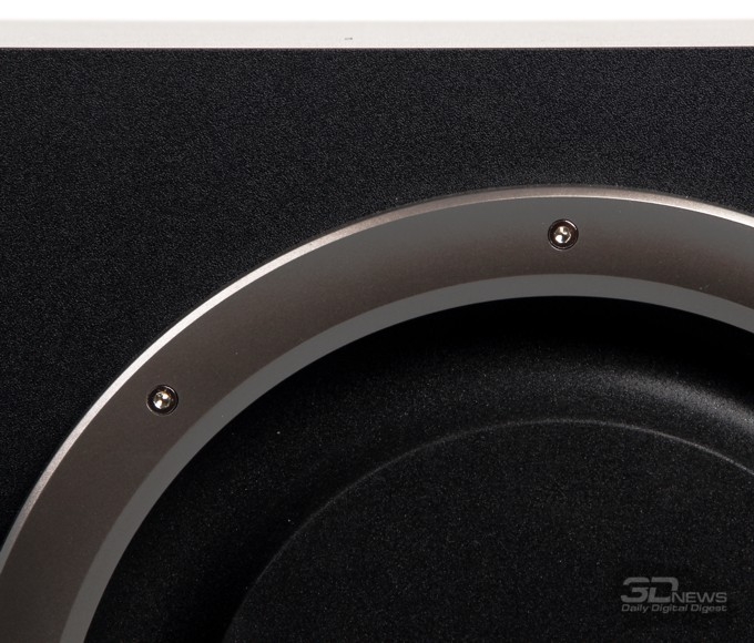 В случае с сабвуфером каждая из двух обмоток низкочастотного динамика подключена к своему усилительному каналу с мостовой схемой включения. Благодаря высокому КПД усилителей, конструкторам системы удалось обойтись небольшим компактным радиатором, которого тем не менее вполне достаточно для отвода тепла от всех оконечных усилителей.