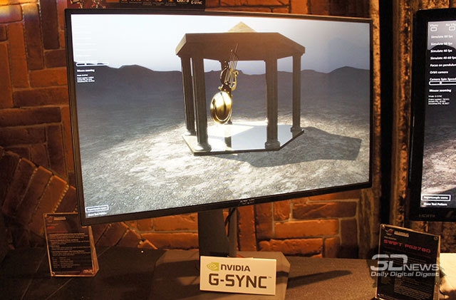 На выставке Computex 2014 ASUS снова продемонстрировала свой монитор ROG Swift PG278Q, который является одним из первых устройств с интегрированным аппаратным модулем NVIDIA G-SYNC для синхронизации кадров при работе с видеокартами NVIDIA на архитектуре Kepler. G-SYNC позволяет улучшить плавность картинки, а также избавиться от таких неприятных артефактов, как разрывы и задержки изображения.