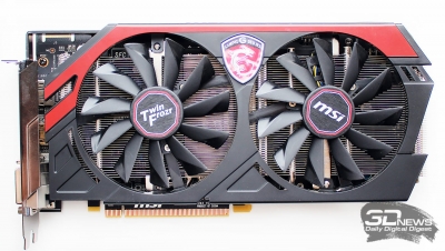 Как и эталонная версия Radeon R9 270X, MSI Radeon R9 270X Gaming оснащена двумя выходами DVI (Dual-Link), одним выходом HDMI версии 1.4a и одним DisplayPort версии 1.2, разместившимися рядом с решёткой для частичного выброса нагретого воздуха за пределы корпуса системного блока.