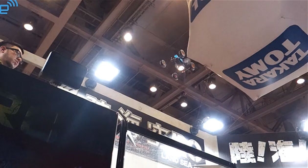 На токийской выставке игрушек Tokyo Toy Show посетители могли лицезреть, как дрон легко садится на воду, а шины удерживают его на поверхности, предотвращая доступ воды к повреждению важной электроники. Те же пропеллеры, которыми устройство управляется в воздухе, позволяют дрону передвигаться и по воде.