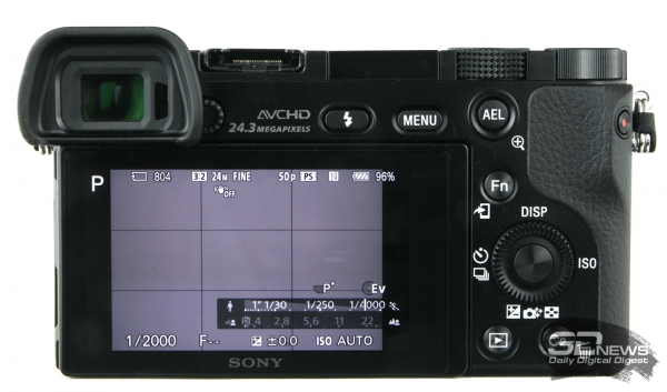 Аналогичным образом пара дисков управления расположена в NEX-7. В общем, нового тут ничего не придумали, а лишь использовали старые удачные решения. Если же снять с камеры резиновый наглазник, то особо выступающих частей и вовсе не окажется. Sony  ILCE-6000 произведена на тайском заводе компании, как, впрочем, и все остальные «беззеркалки» компании. Качество сборки традиционно высокое, а при попытках скручивания и сдавливания корпус ни капли не поддаётся и не издаёт никаких звуков.