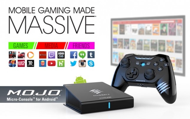 Первоначальный анонс Mad Catz M.O.J.O состоялся в июне 2013 года, а приём предварительных заказов начался в октябре. Система оснащается чипом NVIDIA Tegra 4 T40S @1,8 ГГц, 2 Гбайт RAM, 16 Гбайт встроенной флеш-памяти, разъёмами USB 2.0, USB 3.0, HDMI, 100-Мбит Ethernet, слотом для карт памяти microSD. Поддерживается Wi-Fi 802.11 a/b/g/n и Bluetooth 4.0. Беспроводный игровой контроллер с двумя аналоговыми стиками поставляется в комплекте с консолью. Минимальной задержка отклика составляет 7 мс, а от двух батареек AAA контроллер сможет проработать до 50 часов.