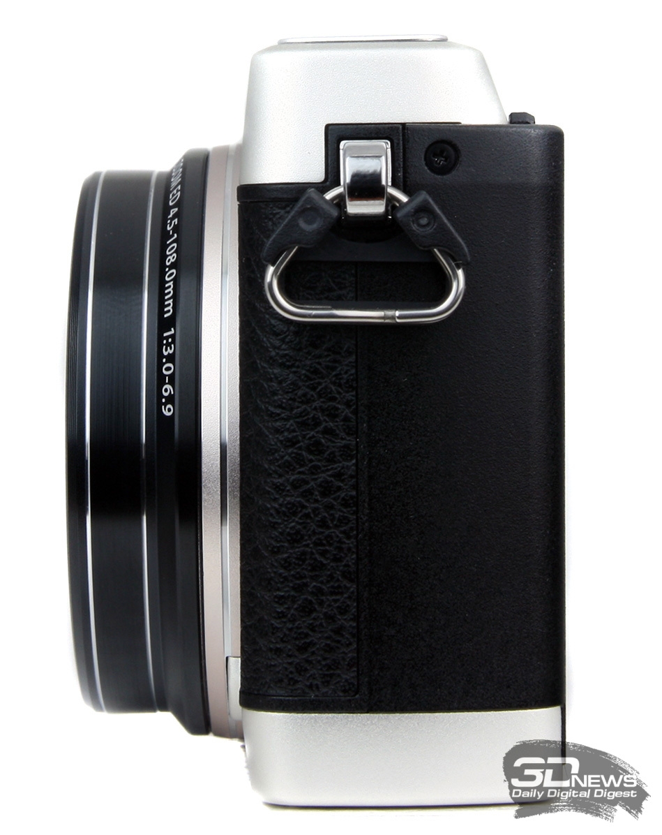 Снизу всё стандартно — разъём установки на штатив, а также отсеки для аккумулятора и карты памяти, скрытые единой подпружиненной дверцей.