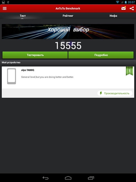 Что касается тестов, то аппаратную платформу этой модели сложно назвать высокопроизводительной, однако с другой стороны выбор компонентов достаточно сбалансирован. В популярных тестах WEXLER.TAB 8q обходит по производительности CPU большинство смартфонов, но в 3D-графике уступает многим игрокам рынка.