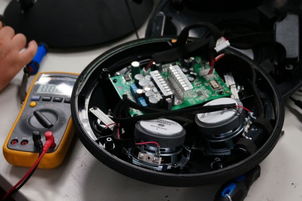 Ещё одно интересное помещение — комната для прослушивания продукции. Здесь можно послушать, как звучит та или иная аудиосистема, в том числе и в сравнении с конкурирующими устройствами. Обычно для этого проводится так называемый «слепой» тест, когда испытуемые скрыты за ширмой, а слушатели не знают, в какой момент играет аудиосистема Harman, а в какой — кого-то из конкурентов.