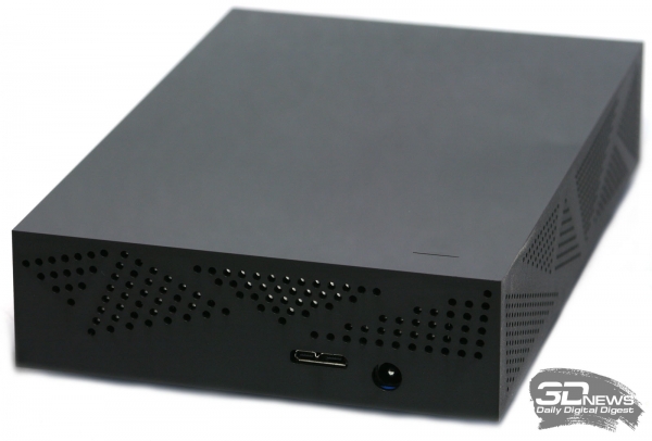 Рядом с разъёмом для подключения адаптера питания расположен порт USB 3.0 Mini-B. Больше на абсолютно ровной боковой стенке корпуса нет ничего. Завершая краткий рассказ о дизайне и эргономике Seagate Backup Plus, остаётся лишь добавить, что устройство получилось необычное и броское. И даже если кому-то его внешний вид придётся не по вкусу, то к удобству работы с ним претензии вряд ли возникнут.