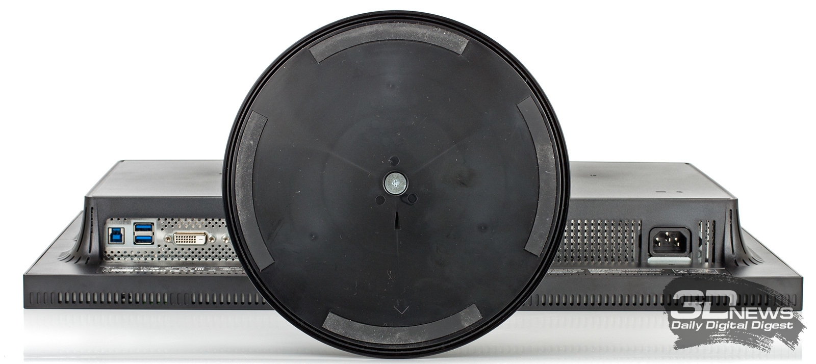 Теперь посмотрим на подставку монитора. Благодаря четырём резиновым ножкам, расположенным на круглом основании, монитор прочно стоит на столе.