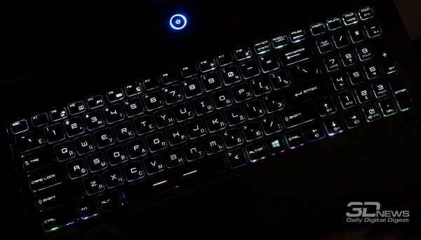 Клавиатура MSI WS60 в целом получилась хорошей, но некоторое время на привыкание потратить придётся. Ход клавиш у неё нормальный, но сами кнопки посажены немного выше, чем у других ноутбуков, что может поначалу вызвать ощущение дискомфорта. У WS60, как и у «Призрака», есть возможность программного переназначения кнопок клавиатуры и записи макросов. Не забыли даже разноцветную подсветку.