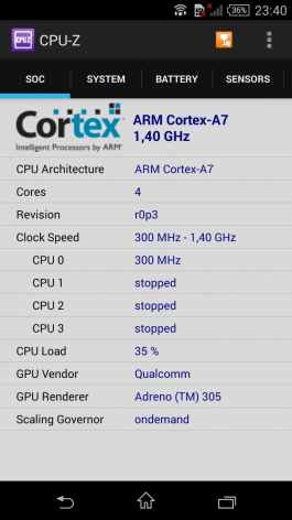Sony Xperia T3 — информация о системе и железе по данным приложения CPU-Z