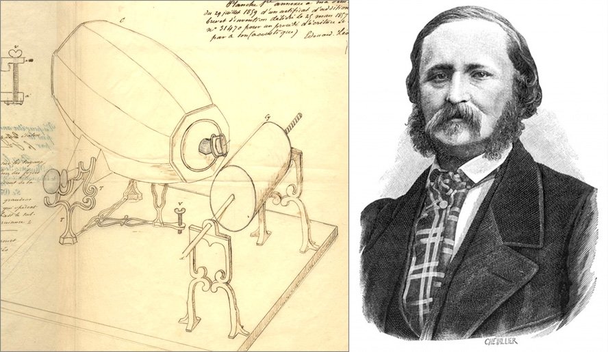 В 2008 году в Парижском архиве обнаружили запись, которая была сделана за 17 лет до изобретения Эдисоном фонографа. Ее автор — французский книгоиздатель Эдуард-Леон Скотт де Мартинвилль. В марте 1857 года он получил патент на фоноавтограф, изобретенное им устройство для записи звука. Оно состояло из цилиндра, на который наматывалась бумага, покрытая воскоподобным слоем после выдерживания над масляной лампой. Человек произносил слова перед мембраной, к которой жестко крепилась игла. От звуковых колебаний игла оставляла след на бумаге.