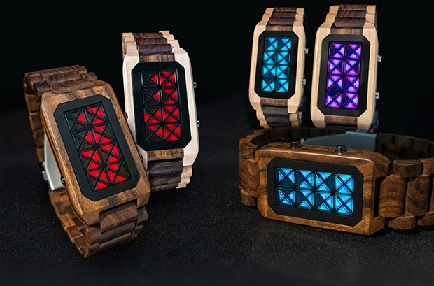 Главной особенностью новинки, если не учитывать фирменный и крайне нестандартный способ показа времени, станет выбор материал для корпуса и браслета. Никакого сверхпрочного титанового сплава, лёгкого алюминия и разноцветного пластика — только экологически чистый продукт в виде чёрного сандалового дерева или клёна, из которого изготовлены основные составляющие новинки.