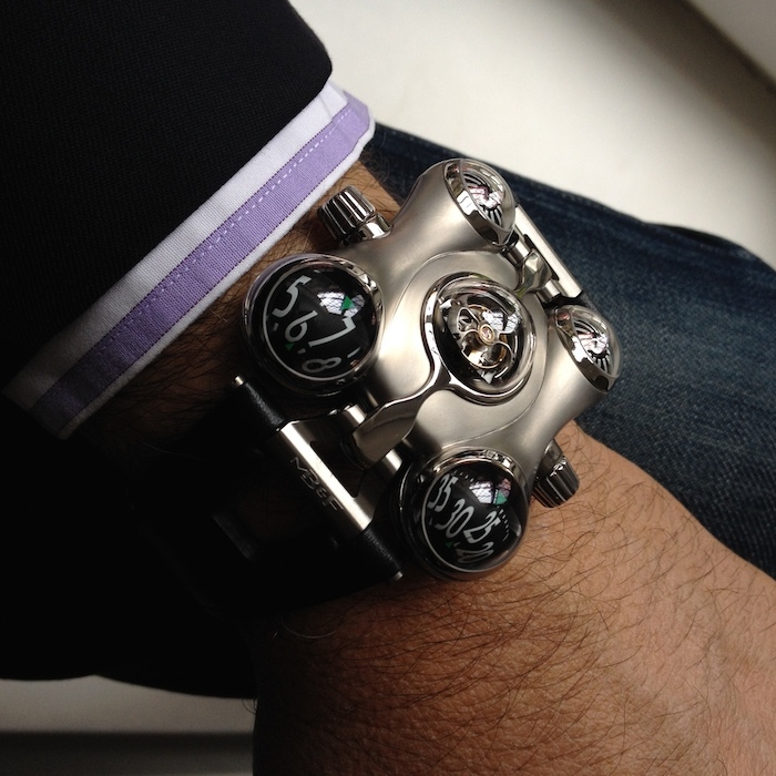 Нестандартный подход при проектировании нового изделия для определения часовых и минутных показателей выбрал дизайнер Максимилиан Бюссер (Maximilian Busser) из компании MB&F, представивший, по мнению авторитетных экспертов, одни из самых неординарных, стильных и концептуальных моделей часов из когда-либо существовавших. Если вы являетесь сторонником теории, что наручное устройство для измерения времени должно иметь круглую, овальную или же строгую прямоугольную форму с небольшими отклонениями от геометрических стандартов, то модель под названием Horological Machine No. 6 (HM6) «Space Pirate», или просто «Космический пират», вряд ли придётся вам по душе.