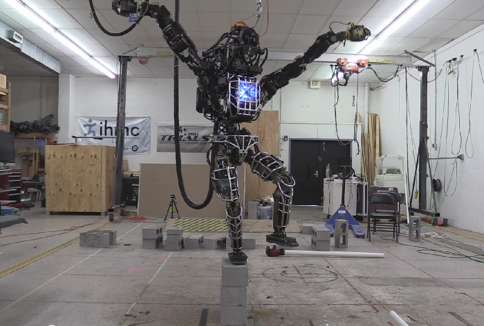 Её детище, 150-килограммовый двуногий Atlas, и раньше демонстрировал неплохие успехи, например, в преодолении каменистых неровных поверхностей или в удержании равновесия при внешнем воздействии. А теперь, благодаря усовершенствованному алгоритму поддержания равновесия, разработанному IHMC (Institute for Human and Machine Cognition), он научился тому, что плохо удаётся даже некоторым людям — балансировать на одной ноге, в то время как другая находится в воздухе. И не стоя на полу, а на узенькой подставке из шлакоблоков.