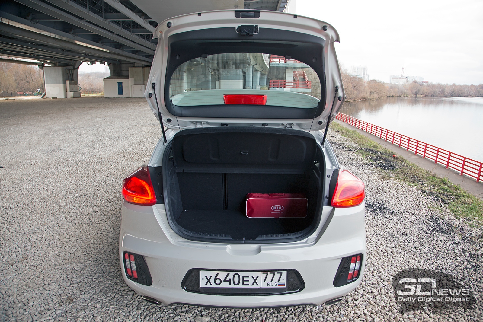 Багажник у хот-хетча довольно большой. Его объем — 380 литров. Если сложить задний диван, можно увеличить пространство почти до тысячи двухсот литров. Под полом багажника прячется пластиковый ящик с отделениями для мелочёвки и «докатка».