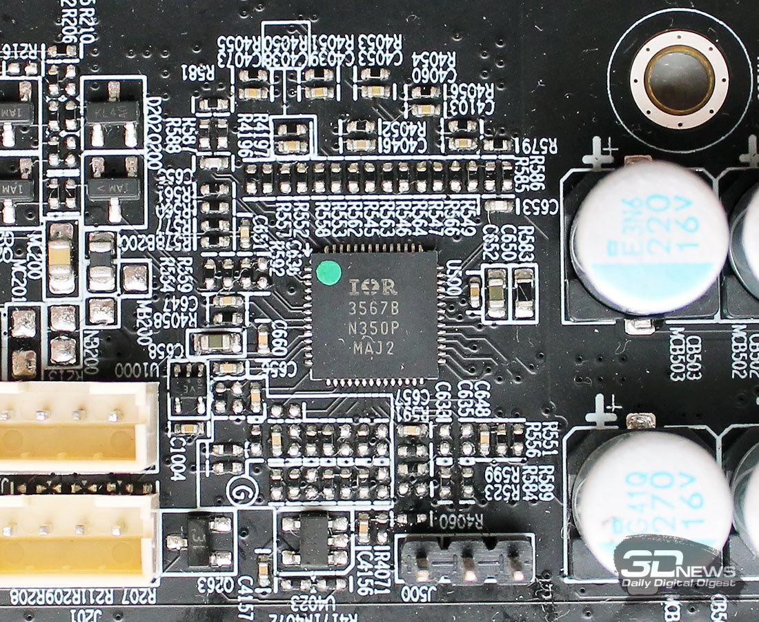 Управление питанием графического процессора осуществляется цифровым контроллером IR 3567B производства International Rectifier.