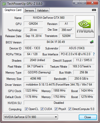 Не будем исключать вероятность столь скромного разгона ядра видеокарты по причине совсем недавнего анонса очень быстрой версии ASUS ROG Matrix GTX 980 Platinum, которой и суждено стать одной из самых максимально разогнанных заводских GeForce GTX 980.