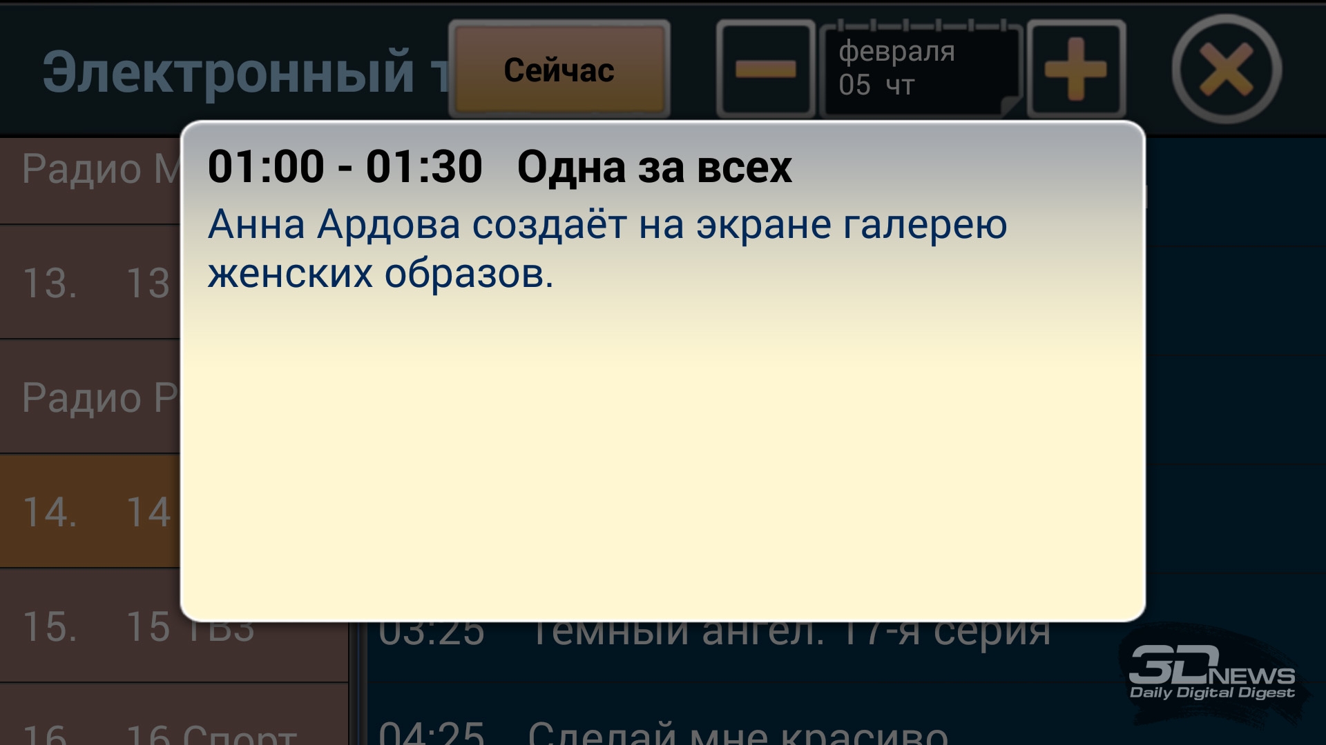 Интерфейс при просмотре телеканала