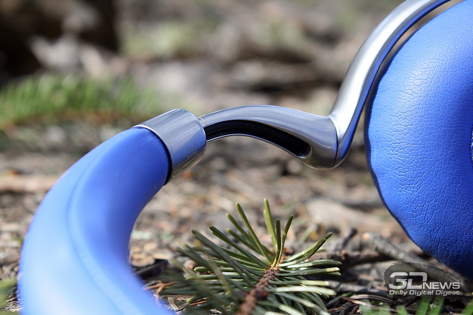 Собственно, из металла изготовлены только крепления чашечек, остальное – это либо пластик под металл, либо кожзаменитель, приятный и немаркий. Он бывает шести цветов — к нам на обзор попала синяя модель, но есть ещё черная, белая, коричнева, желтая и красная. Амбушюры, как уже было сказано, мягкие и довольно узкие. Вообще наушники небольшие, что, несомненно, плюс для устройства, которое предполагается носить с собой.