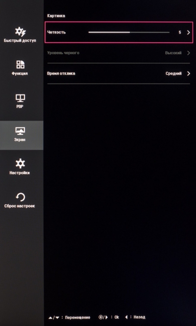 С их помощью можно настроить резкость картинки, режим работы «разгона» панели и различные параметры, ответственные за качество цветопередачи, среди которых гамма и цветовая температура.