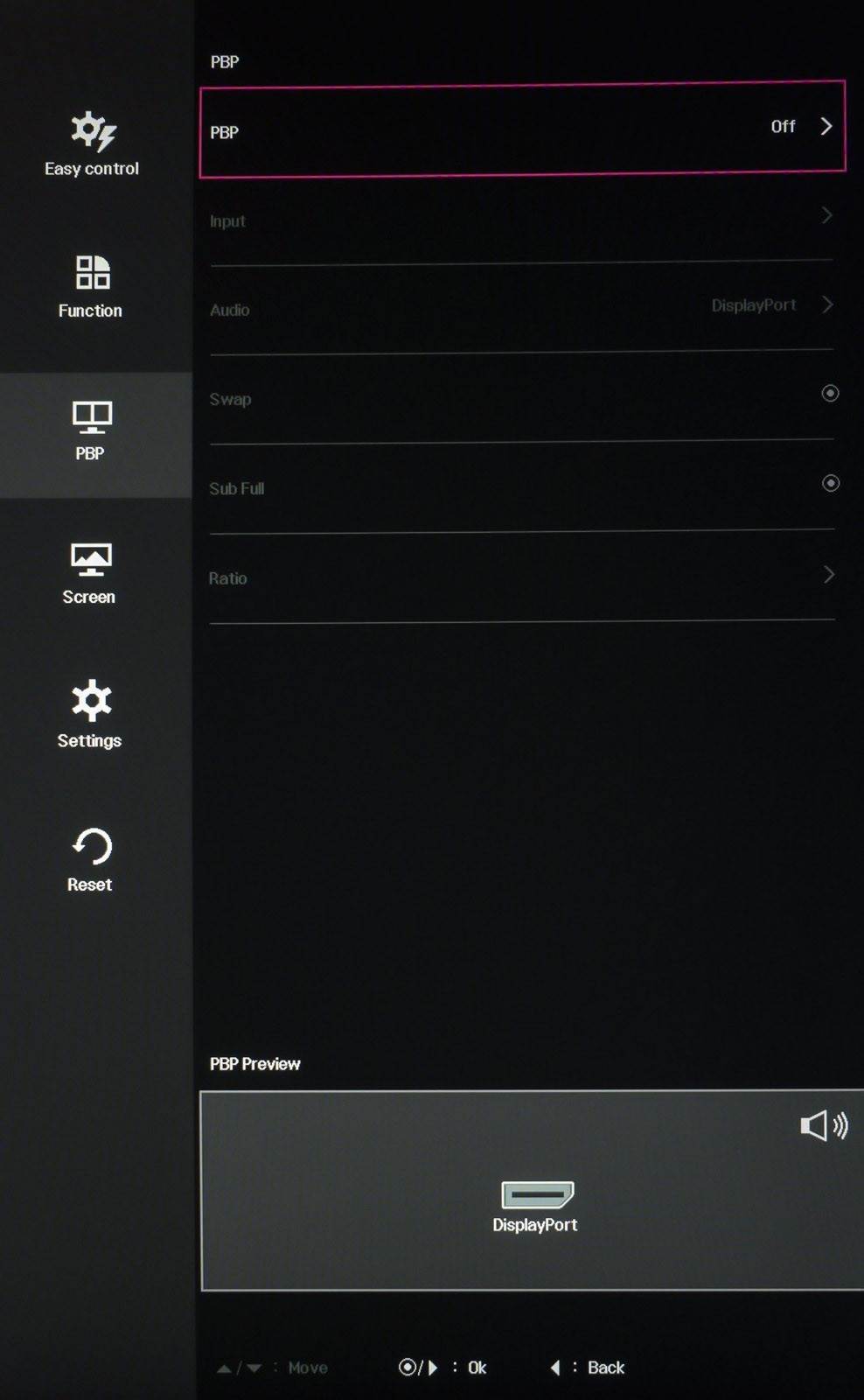 Далее следуют настройки функции PbP для одновременной работы с несколькими источниками изображения.