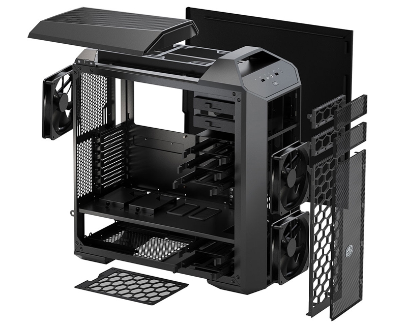 Экстерьер можно кастомизировать за счёт сменных панелей, дверок и различных модулей. Внутреннюю компоновку MasterCase пользователи смогут оптимизировать под тип применяемых компьютерных комплектующих. К примеру, корзины для накопителей можно перемещать внутри корпуса или полностью демонтировать для создания систем разного типа — домашних серверов, медиацентров, игровых ПК или рабочих станций с жидкостным охлаждением.