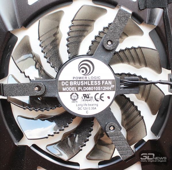 По утверждению инженеров компании Gigabyte, лопасти такой формы позволили не только уменьшить турбулентность нагнетаемого в радиатор воздушного потока, но и увеличить его объём сразу на 23 % в сравнении с показателем вентиляторов с традиционной формой лопастей. Регулировка скорости вращения вентиляторов, по данным мониторинга, осуществляется посредством PWM в диапазоне от 0 до 4220 об/мин — в режиме минимальной 3D-нагрузки или 2D вентиляторы полностью останавливаются.