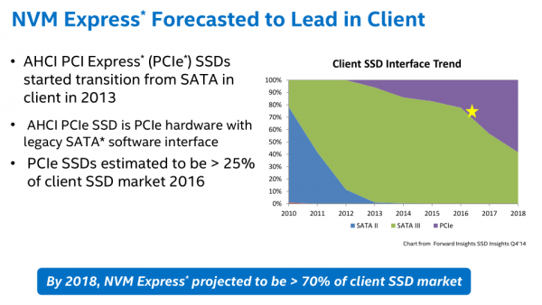 Как ожидается, к 2018 году более 70 % потребительских SSD будут иметь интерфейс NVMe