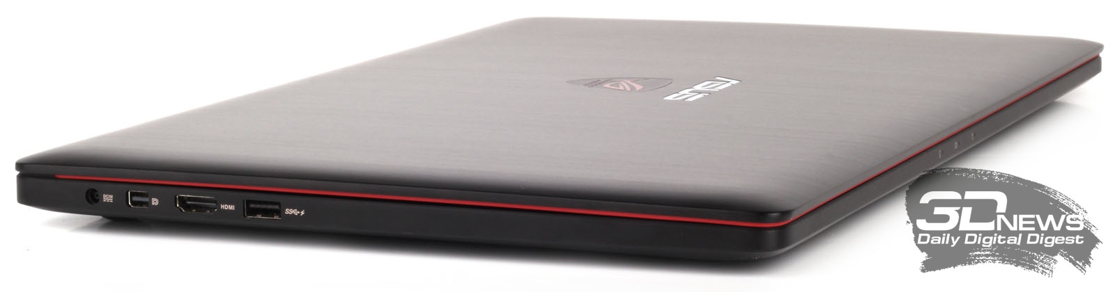 Если бы не ярко-красная вставка, проходящая по всему периметру корпуса, и не фирменная эмблема ROG, размещённая под логотипом компании на крышке ноутбука, определить по одному лишь внешнему виду принадлежность этой модели к игровой серии было бы крайне затруднительно. В отличие от своих конкурентов и соратников по борьбе с виртуальной нечистью, ASUS G501JW выглядит строго и элегантно — без лишних элементов декора, светодиодных гирлянд и вычурных внешних панелей, навевающих мысли о гоночных болидах и боевых космических кораблях. Ничего этого у ASUS G501JW нет, но есть свой, выдержанный в каждом элементе конструкции стиль, который заставляет обратить внимание на новинку.