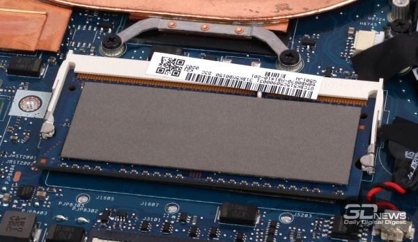 Процессор Intel Core i7-4720HQ имеет двухканальный контроллер оперативной памяти DDR3L-1333/1600. В самом ноутбуке есть лишь один DIMM-слот, в котором в модификации ASUS G501JW-CN039H установлен модуль DDR3-1600 SK Hynix HMT41GS6BFR8A-PB ёмкостью 8 Гбайт. Ещё 4 Гбайт оперативной памяти DDR3-1600 распаяно на системной плате. Их заменить, естественно, нельзя, но расширить общую ёмкость с 12 до 20 Гбайт, заменив основной модуль 16-Гбайт вариантом, возможно.