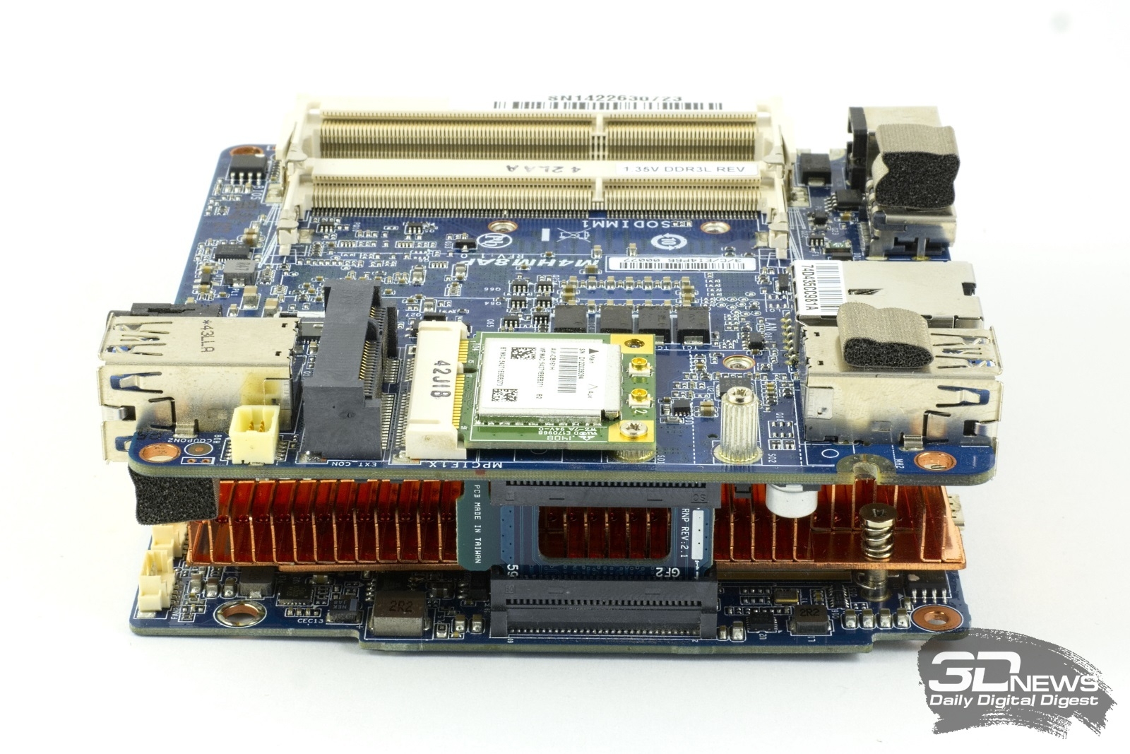 Нижняя плата, к которой у пользователя есть прямой доступ, представляет собой «материнку» в полном смысле этого понятия: она несёт на себе мобильный набор системной логики Intel HM87 и центральный процессор Core i5-4200H.