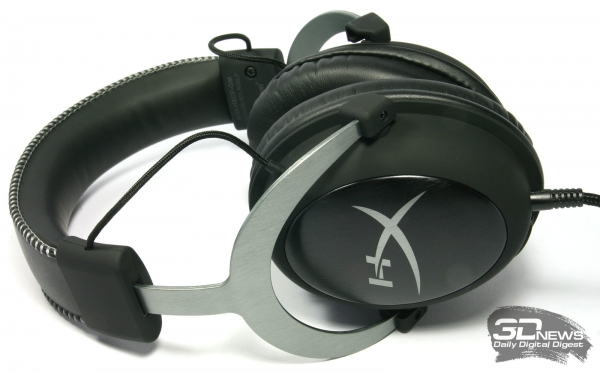 Основой оголовья гарнитуры служит упругая пластина, выполненная из алюминия и закрытая оболочкой из кожзама с мягким наполнителем для комфортного ношения. Оголовье переходит в металлические с-образные крепления чашек, на концах которых закреплены пластиковые корпуса шарниров, позволяющих чашкам отклоняться на угол около 15 градусов, точно подстраиваясь к форме головы. А вот для вращения вокруг вертикальной оси шарниров у чашек не предусмотрено.