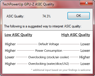 Если судить по маркировке, GPU нашего экземпляра видеокарты выпущен на 13-й неделе 2015 года (конец марта) на Тайване. Он имеет 2816 шейдерных процессоров, 174 текстурных блока и 64 блока растровых операций. Частота процессора в 3D-режиме на видеокарте ASUS STRIX 390X OC повышена с 1050 до 1070 МГц (1000 МГц было у эталонной версии Radeon R9 290X). В 2D- частота осталась прежней и составляет 300 МГц. Качество ASIC у нашего кристалла оказалось равным 74,3 %.