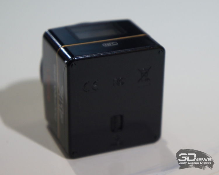Экшен-камера наделена 1/2,3-дюймовым 12-мегапиксельным КМОП-сенсором BSI CMOS и небольшим информационным дисплеем. Разработчик оснастил устройство адаптером беспроводной связи Wi-Fi и модулем NFC.