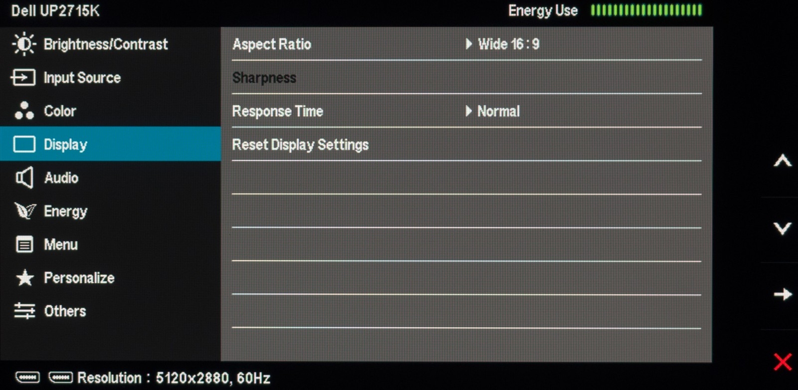 Монитор Dell UP2715K построен на единственной в своём роде AH-IPS-матрице производства LG Display, модель LM270QQ1-SDA2. Это профессиональное 10-битное (вероятнее всего, без использования FRC-метода) решение размером 27 дюймов с громадным разрешением 5120 × 2880 пикселей (стандарт 5К), расширенным цветовым охватом, GB-LED-подсветкой без использования ШИ-модуляции (Flicker-Free) и стандартным соотношением сторон 16:9.
