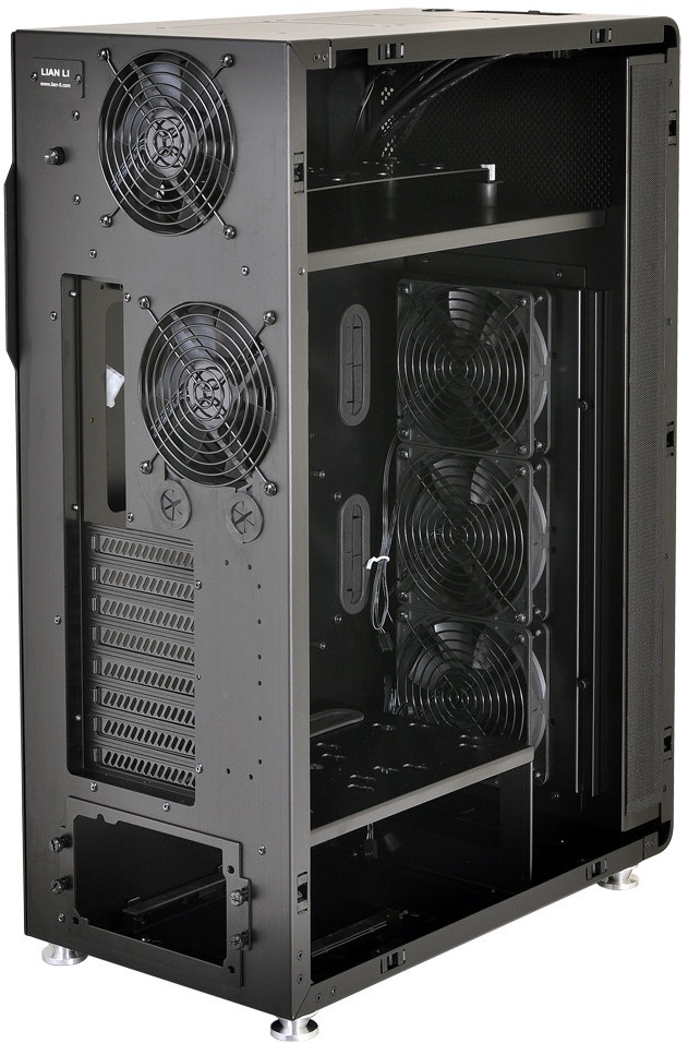 Особое внимание уделено системе охлаждения. Пространство внутри модели PC-X510 разделено на три отсека — для блока питания, материнской платы с основными комплектующими и области, где установлены накопители. Три 120-мм вентилятора нагнетают воздух внутрь корпуса. Два дополнительных вентилятора выводят горячий воздух с верхней и центральной части, а блок питания, как предусматривает Lian Li, должен самостоятельно отводить тепло с нижней части, где он установлен. Такая конструкция, по мнению разработчиков, обеспечивает оптимальное охлаждение разных частей системы.