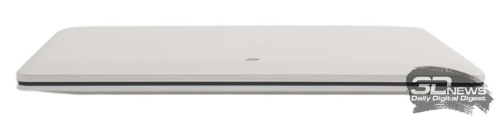 Никаких сильно зауженных или заострённых граней, зрительно уменьшающих толщину корпуса, у Switch 10E нет. Наоборот – в собранном состоянии герой обзора выглядит «пухлячком», ведь общая толщина такого «сэндвича» — почти 23 мм. По отдельности элементы тоже не кажутся худыми. Впрочем, для планшетной части Acer Switch 10E это вполне нормальное явление, поскольку большинство представителей данного класса на основе Intel Atom обладают схожими габаритами.