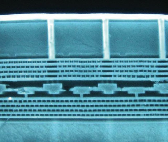 Стековая компоновка разнородных кристаллов методом компании Novati (сравните верхние TSVs каналы с «сеткой» вольфрамовых микроканалов в толще сборки)