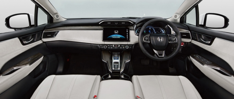 При разработке Honda FCV был использован совершенно новый подход к компоновке. В модели Honda FCX Clarity топливные ячейки, ответственные за выработку энергии, были установлены в центральном тоннеле. Создатели Toyota Mirai спрятали их под передними сиденьями. Все это налагает определенные ограничение на общую структуру транспортного средства. Специально для Honda FCV размеры силовой установки были уменьшены, поэтому она теперь она целиком помещается под капотом — прямо как обычный ДВС. Эта особенность может пригодиться и в будущем, поскольку позволит переводить обычные машины на водородную диету.