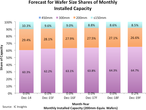 Официально три крупнейших производителя интегральных схем в мире — Intel, Samsung Electronics и Taiwan Semiconductor Manufacturing Co. — не забросили планов использования 450-мм кремниевых подложек. Тем не менее, согласно оценкам IC Insights, одной из самых осведомлённых компаний-аналитиков рынка производства полупроводников, в ближайшие годы компании будут сосредоточены главным образом на максимизации производства на 300-мм фабриках, а не на постройке 450-мм производственных мощностей.