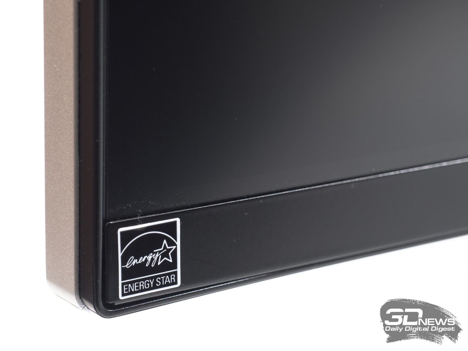 При выключенном экране передняя панель представляет собой одно сплошное чёрное поле благодаря «безрамочному» дизайну. Тут изменений никаких, хотя пора бы уже уменьшить толщину внутренних рамок, как это удалось сделать на некоторых 23,8- и 25-дюймовых IPS-решениях.